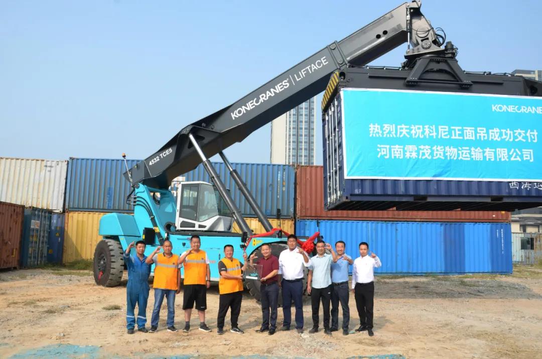 秋高氣爽日,正式交車時(shí)!本周,科尼正面吊成功交付至河南霖茂貨物運(yùn)輸有限公司(以下簡(jiǎn)稱“河南霖茂”),交付現(xiàn)場(chǎng)熱烈而隆重,此次交付的是科尼全新LIFTACE 4532 TCE5正面吊。